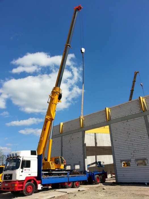 Womag buduje halę sportową żurawiem Liebherr LTM 1200